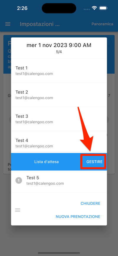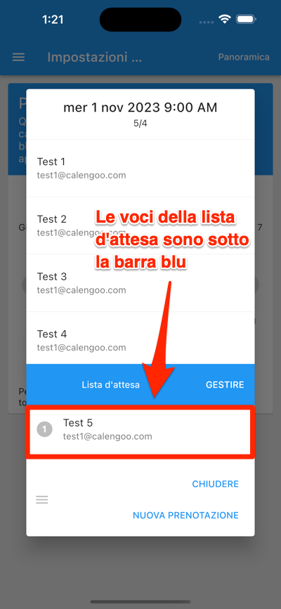 Nell’app puoi vedere quali clienti hanno una prenotazione e quali hanno un posto in lista d’attesa.