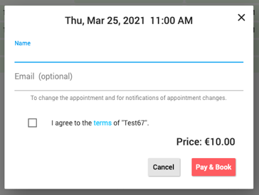 Das Buchungssystem unterstützt eine Zahlungsfunktion, mit der Ihre Kunden bei der Buchung eines Termins bezahlen können. Bitte kontaktieren Sie booking@calengoo.com, wenn Sie diese Funktion nutzen möchten, damit sie für Ihr Konto aktiviert werden kann.